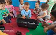 Fizemos a plantação de mudas de beterraba com os bebês do berçário 1. Eles manusearam as pedras e a terra, e puderam regar e observar o crescimento das planta ao longo de 2 meses. Também disponibilizamos a beterraba in-natura, para que pudessem explorar tanto de forma oral, experimentando o sabor, como com o toque e explorando a tinta que sai da beterraba.