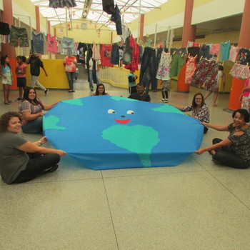 Em nossa escola, fizemos uma adaptação para a realização da feira de trocas. Na verdade, realizamos uma atividade que chamamos de "Varal solidário". Dessa forma, foi proposto às crianças que conversassem com os pais e observassem se tinham, em casa, roupas que não lhes serviam mais, que estivessem em bom estado e pudessem ser doadas. As crianças traziam a peça de roupa e penduravam no varal e, em troca, levavam uma ficha para concorrer a uma cesta de supermercado, através de sorteio. Os produtos da cesta foram doados pelo grupo de professores da escola.