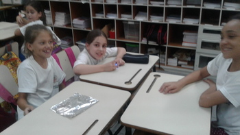 Juntamente com a Papp realizamos o experimento na sala com os alunos. Eu e todos os alunos gostamos muito.
